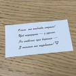 Подарунок стає справді душевним, коли до нього додається особисте послання. Ми пропонуємо послугу персоналізації — надрукуємо ваше привітання на стильній чорно-білій листівці та вкладемо її в подарункову коробочку.Чорно-біла графіка створює атмосферу витонченості та поєднується з будь-яким нашим подарунковим набором.Це ідеальний спосіб передати ваші почуття, коли ви не можете вручити подарунок особисто, або просто хочете додати особливої теплоти до вашого презента.ФОРМАТ ТА ВИМОГИ ДО ТЕКСТУДизайн: Чорно-біла графікаОбмеження по тексту: Текст має бути коротким — як четверостишие (4-8 рядків максимум). Ідеально підходять:- Короткі поздоровлення